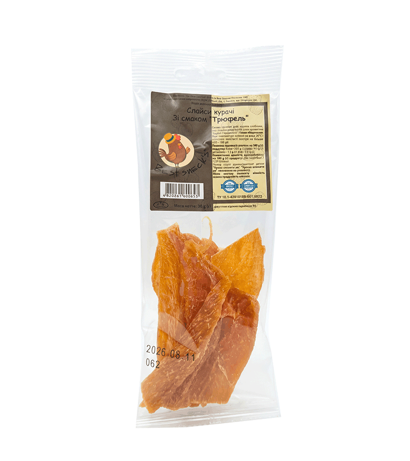 Сушене філе куряче слайсами, сіль нітритна, спеція-суміш смако-ароматична “Грибні з трюфелем”